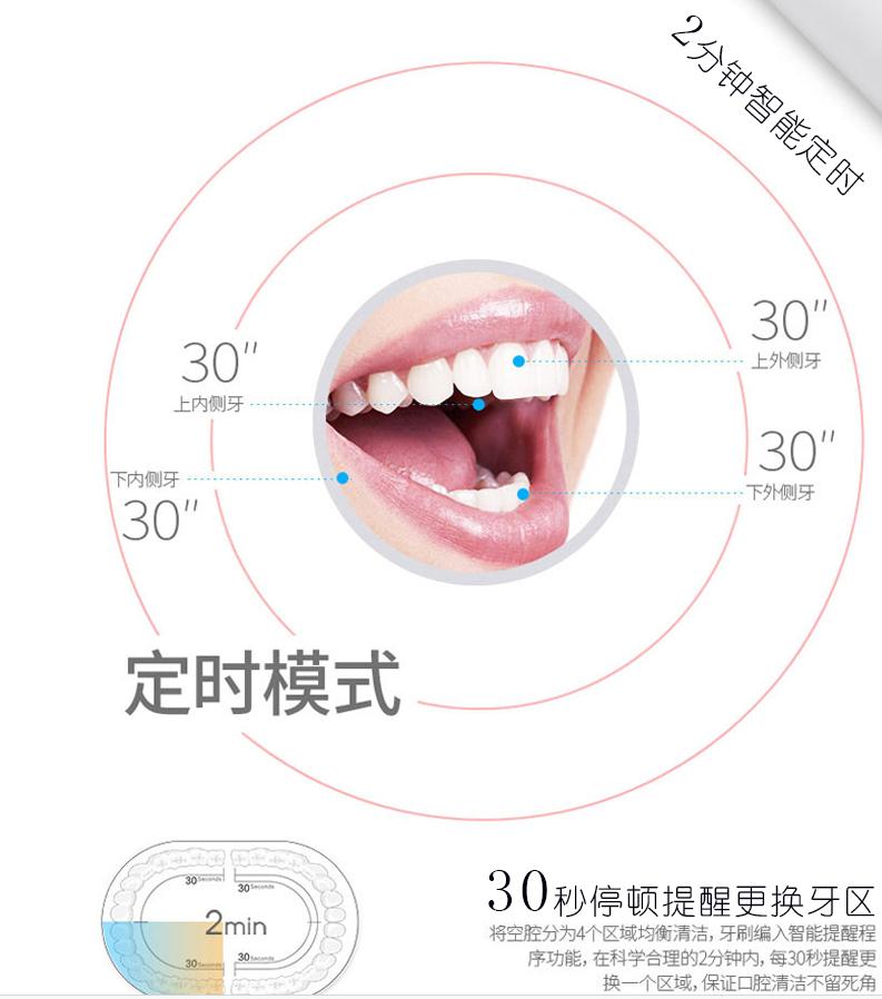 然后還有2分鐘定時,30秒暫停停頓提示功能,不帶腦子都可以養(yǎng)成良好的刷牙習(xí)慣啊